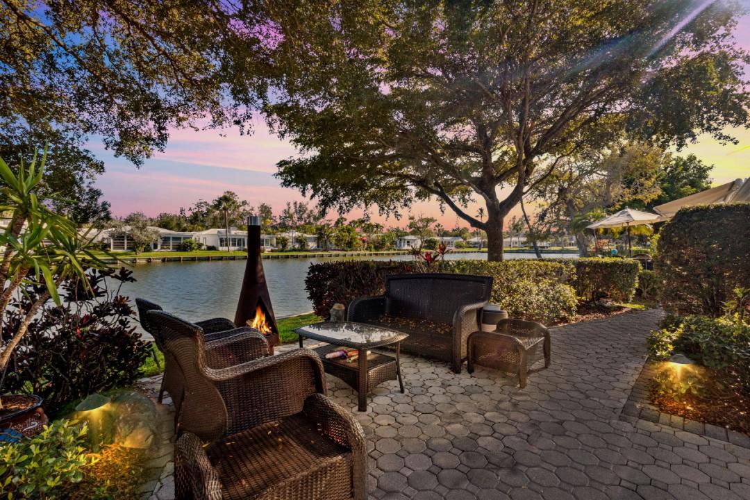 Longboat Key waterfront lifestyle at its finest is now yours to discover. We are proud to present this stunning, fully renovated waterfront two-bedroom, two-bathroom freestanding villa-arguably a premier location within the Spanish Main Yacht Club. Situated in the middle of the north shore of serene Lake Spanish Main, it provides breathtaking views in every direction. The effortless waterfront views are the star of the show, especially enjoyed from your oversized paver patio-ideally designed for perfect island lounging-but also from nearly every room in the home. The waterfront backyard of this residence is framed by mature Black Olive trees that provide dappled shade while perfectly preserving the bright southern light and glistening water. This "center-of-everything" location is truly unbeatable, offering effortless access to your private deeded beach, the deep-water marina, the community pool, and boat slips. Modern Luxury Meets Coastal Comfort- Inside, a comprehensive renovation features custom tile flooring throughout, immediately setting an elevated, modern tone. The gourmet kitchen is an entertainer's dream, boasting custom cabinetry, designer stone countertops, and new stainless steel appliances centered around a first-class island with updated statement lighting. The open-concept floor plan flows seamlessly from the kitchen into an elegant dining area and a spacious family room, where natural light pours in alongside expansive lake views. Beyond, a sun-drenched Florida room?perfectly suited for an artist's studio and private office?offers southern-facing windows where you can watch the sunlight glisten off the water. Private Retreats-The primary suite is a sanctuary of its own, featuring a walk-in closet, generous proportions, Lake Views and a fully renovated ensuite bath. The guest wing is equally impressive, offering an ample bedroom and a stunningly renovated bathroom with a contemporary walk-in shower. Rounding out this exceptional property are the interior workshop, laundry room, additional storage, outdoor shower and a spacious carport perfectly sized for all your island toys. New Windows installed 2019, 2022 brought a new Roof and AC.