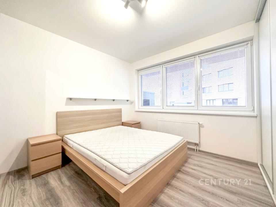 Interiér bytu tvoří oddělená ložnice vybavená dvoulůžkovou postelí, dvěma nočními stolky a prostornými šatními skříněmi. Obývací část je propojená s kuchyňským koutem vybaveným vestavěnými spotřebiči. K dispozici je moderní koupelna a předsíň s botníkem, komodou a šatní stěnou. Na oknech jsou vnitřní i zatemňovací rolety, instalována je také síť proti hmyzu. K bytu náleží komora umístěná na stejném patře.