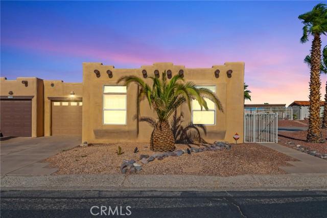 Welcome to your river retreat! This beautifully maintained 3-bedroom home, with a den that can double as a 4th bedroom, offers comfortable desert living at its finest. Bright and spacious with an open-concept layout, it features a large living room, dining area, and kitchen - perfect for entertaining or relaxing after a day on the water. Additional highlights include skylights, a separate laundry room, and a warm, inviting atmosphere throughout the community. Located in a friendly neighborhood, this home is ideal for both full-time residence and vacation getaway. The community amenities include private beaches with golf cart parking, a basketball and volleyball court, a pool, and a spa - all for the residents’ enjoyment. Best of all, it is just steps from the water and minutes from the Colorado River, Needles Marina, and Needles Golf Course! Step outside to a fully fenced backyard designed for entertaining or unwinding under the desert sky. Enjoy a covered patio, built-in gas and BBQ, and a cozy gas fire pit- the perfect spot to take in those peaceful, spectacular sunsets. The property also features an attached large 2-car boat garage, with interior access and a rear door for easy river access. Do not wait- this beautiful river home!