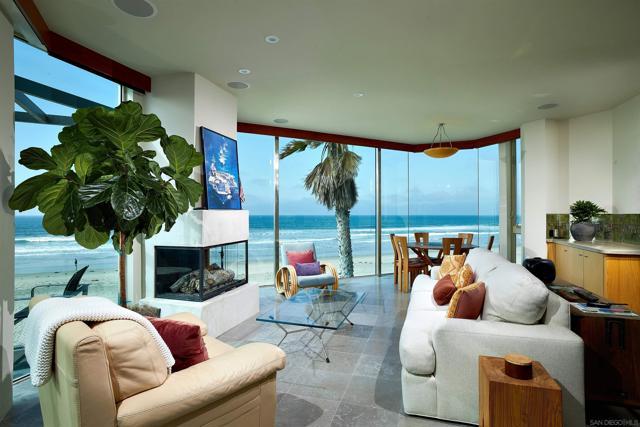 Welcome to your dream coastal retreat! This luxurious oceanfront penthouse condo offers an unparalleled living experience with breathtaking panoramic views of the Pacific Ocean. Perfectly situated on the top floor, this elegant residence combines sophisticated design, modern amenities, & the serene ambiance of seaside living. Floor-to-ceiling windows and expansive terraces provide unobstructed views of the ocean, creating a seamless indoor-outdoor living experience. The open-concept layout features a beautifully designed living & dining area, gourmet kitchen equipped with top-of-the-line appliances, custom cabinetry, & a large island. The master bedroom boasts access to the large balcony, walk-in closet, & a spa-like en-suite bathroom with a soaking tub & rain shower. Additional bedroom is generously sized, each with en-suite bathrooms & private deck. Enjoy stunning sunsets & the soothing sound of the waves from your private rooftop deck with built-in BBQ, ideal for alfresco dining & lounging. Located in the heart of Mission Beach, the condo is close to fine dining, shopping, entertainment, & outdoor activities. Experience the epitome of luxury living in this exquisite oceanfront penthouse condo, where every detail is designed to provide comfort, elegance, and an unmatched seaside lifestyle.