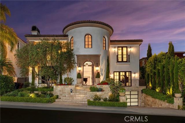 Achieving the pinnacle of luxury is no easy feat, yet it comes naturally at this gorgeous custom estate behind the guarded gates and fountains of Dana Point’s beachfront Ritz Cove collection. Completely remodeled to include today’s most sought-after appointments, finishes and fixtures, the multi-level villa reveals postcard-perfect sunset, Catalina Island, and whitewater Pacific Ocean views that enrich indoor and outdoor living areas. From a rooftop deck, where entertaining is complemented by a built-in BBQ bar with ice maker and Hestan refrigerator, panoramic views embrace southern Orange County’s rolling hills, dramatic coastline and shimmering evening lights. Natural light illuminates interior spaces as well, including a phenomenal rotunda-style foyer with double-height ceiling, sparkling chandelier, clerestory windows and a circular staircase leading to upper and lower floors. A formal living room displays an elegant fireplace and French doors opening to a front terrace, and limestone and wood floors are featured throughout. Memorable moments with friends and family are destined to be shared in the great room, where French doors lead to the backyard, a linear fireplace is framed by exotic stone, and a wet bar features a double-waterfall island, open shelving, an ice maker and under-counter Sub-Zero refrigerator. A few steps above the great room, the dining room flows effortlessly to an open kitchen with massive island, circular breakfast nook and 328-bottle wine wall. Premium appliances include a Wolf range with pot filler, cabinet-matched Sub-Zero refrigerator, two Miele dishwashers, and a built-in Miele coffee station. Generously proportioned at approximately 7,800 square feet, the sublime residence hosts an elevator to all levels, four ensuite bedrooms including one on the main level, five- and one-half baths, and a fireplace-warmed executive office with wood paneling and coffered ceiling. The lower level reveals a subterranean garage for five or six vehicles, a gym with built-in refrigerator, and a circular bonus room that is perfect as a media lounge, wine room or massage studio. Upstairs, the primary suite rivals the neighboring Ritz-Carlton resort, offering a barrel ceiling, bar, two balconies, and a boutique-style walk-in closet. Limestone walls and surrounds enhance the bath, which boasts a freestanding tub, dual-access rain shower, two sinks and a domed ceiling. Outdoors, a resort-style pool & spa with Baja shelf are featured in the backyard.