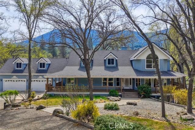 Custom-built riverfront estate in an unmatched, idyllic setting. Set on three park-like acres with sweeping mountain views in every direction, this exceptional property is bordered by the Fresno River and Deadwood Mountain—creating a serene, year-round habitat for abundant birds and wildlife. The securely fenced grounds feature a gated entrance, expansive circular drive, and lush landscaping with majestic trees, decorative walkways, vibrant flowers, and a variety of fruit trees. A welcoming wraparound porch and multi-level decks provide the perfect setting to relax with family, entertain guests, or host larger gatherings. The main level offers a thoughtfully designed layout centered around a striking curved staircase. A gourmet kitchen features an island, hidden walk-in pantry, breakfast bar, and is conveniently located near the laundry room, guest bath, and a separate wet bar with seating area. The comfortable living room with a stone fireplace, formal dining room, and inviting front entry create a warm and elegant atmosphere. Also on the main level is a dedicated office with picture windows, along with a spacious primary suite complete with private bath and direct access to the back deck. Upstairs, two bedrooms each feature walk-in closets and private half baths, connected by a shared Jack-and-Jill shower. The generously sized second bedroom offers flexibility as a playroom, gym, or additional living space. High ceilings throughout the home enhance the sense of openness and light. In addition to the attached four-car garage, the property includes a full workshop with a half bath, designed to accommodate RV or oversized vehicle parking, plus an attached multipurpose room with its own exterior entrance. Additional features include an RV parking platform with hookups, a dumbwaiter for firewood, a pumphouse, and an exterior boathouse. Ideally located just 30 minutes from the southern entrance of Yosemite National Park, 20 minutes to Bass Lake, and 10 minutes to Oakhurst for everyday shopping and dining. Larger retail, services, and medical facilities are available in Fresno, less than an hour away.