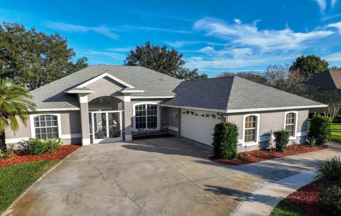 This spacious 3 bedrooms, 2.5 bath is in an exceptional lake community. This home is in Meadowlake Estates, which provides docking privileges on Lake Huntley. The home includes both covered and screen porches for enjoyment. The main living space was designed for enjoyment and relaxation. New tile flooring along with ceiling fans enhance the living space. A large eat-in kitchen with stainless steel appliances provides room for gathering and meal preparation. A formal dining room is steps away from the kitchen. A special feature is sliding glass doors which allow additional space or the creation of a private room. Both the pantry and laundry room are easily accessible to the kitchen or garage.