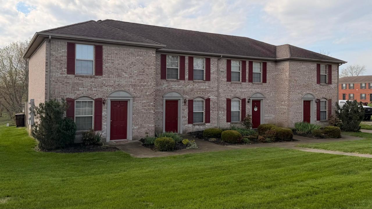302 Timothy Way — Prime income property and owner-occupant opportunity: all-brick quadruplex with two 2-bed/2.5 bath units and two 2-bed/1.5 bath units. Updated appliances throughout, eat-in kitchens, washer/dryer hookups, double closets, window blinds, and durable tile/LVT/carpet flooring. Two assigned parking spaces per unit, attractive landscaping, and front lawn. Pet- and smoking-free since 2007. Convenient to I 75, EKU, and Richmond Center — strong rental demand, low turnover potential, and ideal for living in one unit while renting the others. Contact the listing agent for the rent roll and showings.