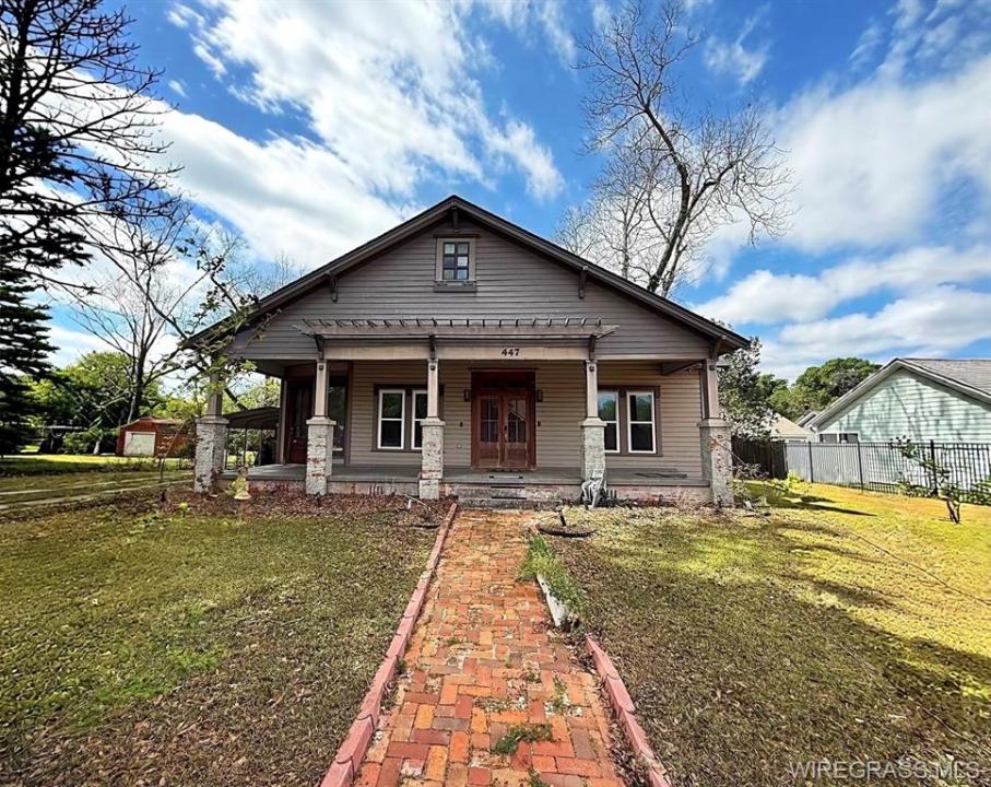 Lovely, updated craftsman style 3 bed & 2 bath home with warm southern charm along with modern touches throughout. In 2015 the remodel features, refinished original hardwood floors, new doors w/ transoms, prism sidelights, new central HVAC, new ceiling fan/light fixtures, entire kitchen including new backsplash, cabinets & appliances. A new master bath was added in 2016 with a clawfoot tub. A new roof was installed in 2021. New Washer and Dryer in 2020 will remain with the property. New refrigerator in 2023. PECS plumbing under kitchen sink. Fairly new breaker system. A new detached metal carport has recently been added with an attached shed. The home opens up to a large living room with high ceilings and a fireplace. A second fireplace is found in the master bedroom to create a radiant soothing vibe for winter nights. The separate room off of the living room has nice brick touches several floor to ceiling windows and would make a nice space for an office or a sunroom. WARNING: Back deck is not safe at all ~ do NOT attempt to walk on it. This home is easy to show and conveniently located near our sweet downtown coffee shop, restaurants, grocery store and shopping centers. Call today for your appointment to view! .