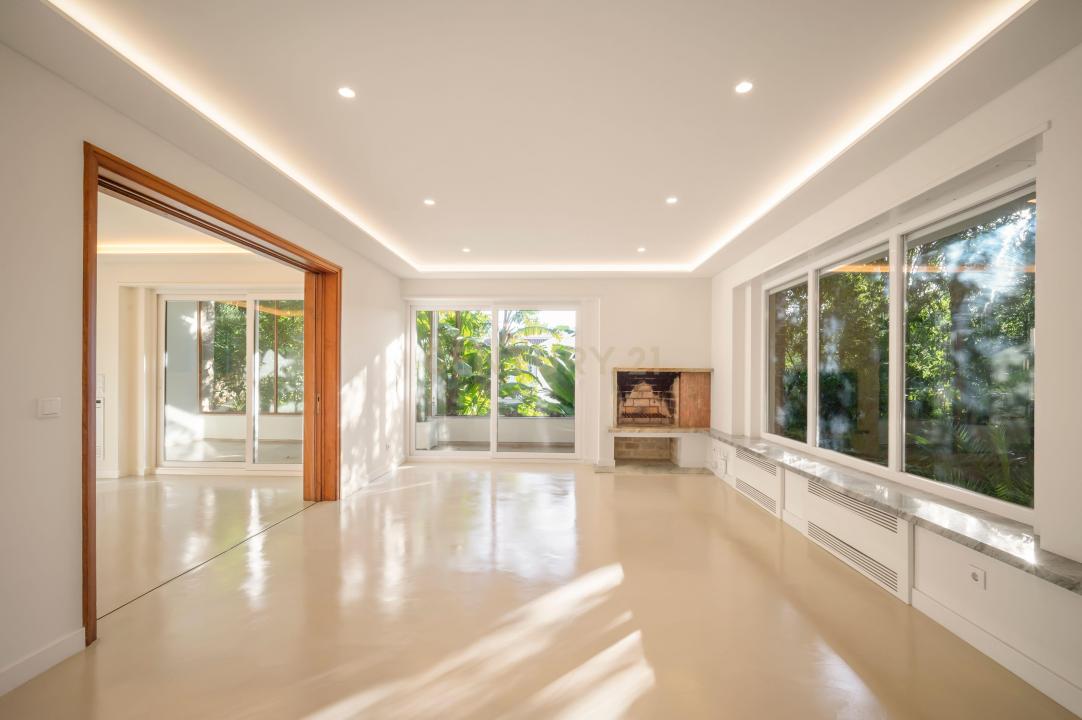 Inserida num amplo terreno de 1.347 m², esta moradia totalmente remodelada distingue-se pela luz natural abundante, pelos amplos espaços interiores e por um exuberante jardim que envolve toda a propriedade. Localizada no prestigiado Parque Palmela, encontra-se a poucos minutos a pé da praia, do centro de Cascais, de supermercados e dispõe de rápido acesso à A5.