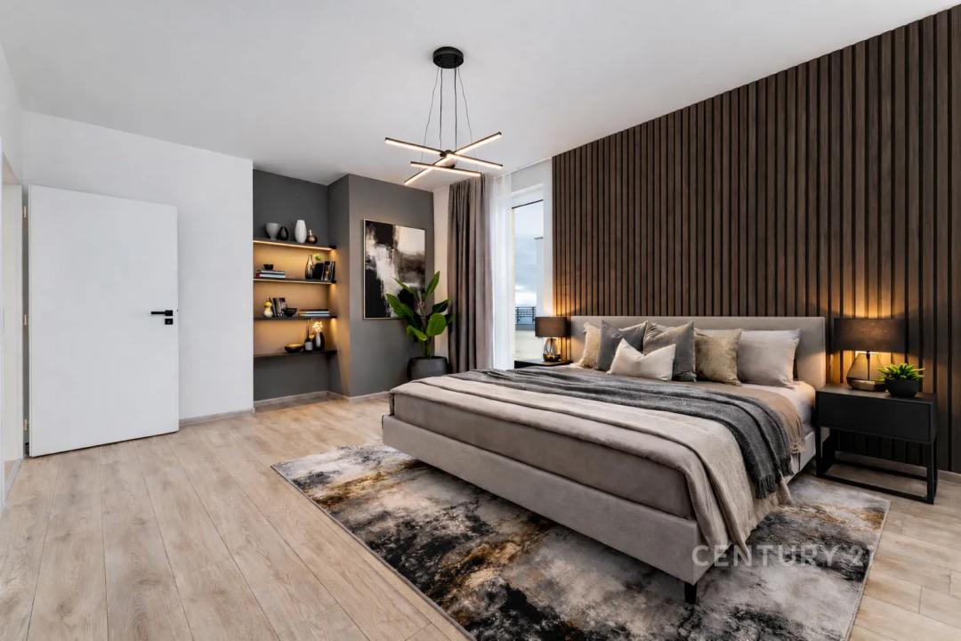 Interiér bytu o ploše cca 77 m² je připraven k dokončení podle vašeho vkusu. Byt se prodává nezařízený, což vám dává svobodu zvolit si kuchyňskou linku a nábytek přesně na míru vašim představám (přiložené vizualizace slouží pro inspiraci). Jedinou kompletně dokončenou částí je designová koupelna a samostatná toaleta, které jsou provedeny ve vysokém standardu s moderními obklady a černými armaturami.