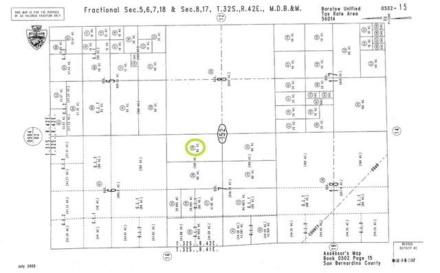 ***Come VIEW and MAKE an OFFER TODAY! AFFORDABLE ACREAGE located in expanding Kramer Junction CA. The 80-ACRE parcel, situated in the San Bernardino County High Desert, is zoned RC - Resource Conservation. The RC zoning allows for many agricultural, residential, recreational, commercial, and renewable energy possibilities. Located a few miles east of Hwy-395, and just north of the new Hwy-58 overpass, the area is right in the path of growth. Plus, only a short drive from the I-15 and I-40 interchange in Barstow CA. An ideal spot for your own personal ranch or recreation area. Not to mention the potential for mitigation land banking, and with California increasing standards for renewable energy generation, demand for desert acreage has started to rise. In addition, the adjacent 80-ACRE parcel to the south is also available. See APN 0502-152-35. Each parcel can be purchased separately or as a package deal. Priced at only pennies per sf, this is a must see OPPORTUNITY before it's too late. (GPS Coordinates to site 35.169713,-117.507919) ***