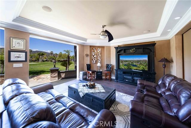 Gorgeous custom-built, fully enclosed home with shade screens, perfectly positioned on the golf course and offering breathtaking sunset views. This expansive build-out features a large family room, dining area, and beautifully appointed kitchen, along with a dedicated laundry room and abundant storage. The home includes five electric power screens, elegant crown molding with soffits, and thoughtfully selected finishes throughout. The kitchen is exceptionally well designed with residential wood cabinetry, tile backsplash, stunning countertops, oven, cooktop, and microwave. The dining room is highlighted by a chandelier, expandable dining table, and wood-tone flooring, creating a warm and inviting space. Ceiling fans complement the décor while enhancing comfort. The patio is ideal for evening dining and entertaining, overlooking the golf course, pond, and spectacular sunsets, surrounded by mature, low-maintenance landscaped sago palms. Conveniently located just around the corner from the main clubhouse and pool. Owner will carry paper. Financing available. A truly special property offering comfort, style, and serene resort living.