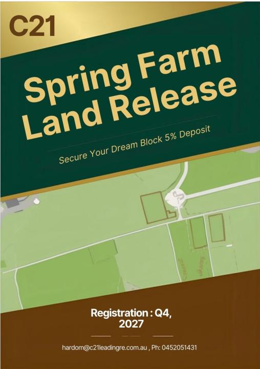 Brand New Land Release | Prime Opportunity in Spring Farm