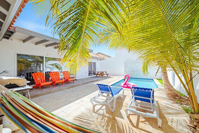 Discover this beautiful residence located in the highly desired Opal neighborhood in Noord, Aruba just minutes from Palm Beach, high-rise hotels, world-class dining, and white-sand shores. This prime location offers the perfect blend of island tranquility and convenience. Step inside to an inviting open floorplan designed for both comfort and entertainment. The heart of the home is the spacious chef's kitchen, featuring ample counter space, modern cabinetry, and a layout ideal for hosting family and friends. This property offers 3 generously sized bedrooms, each complete with its own private bathroom, providing maximum comfort and privacy. The expansive master suite stands out with its impressive size and a beautifully finished en-suite bathroom. Enjoy Aruba's outdoor lifestyle in the private backyard oasis, complete with a refreshing swimming pool and plenty of space to relax or entertain. As an added bonus, the property features a separate 1-bedroom apartment with its own private patio, perfect for visiting guests or generating additional rental income. This home is ready to move in and designed for island living at its best. Contact us for more information or to schedule a viewing.