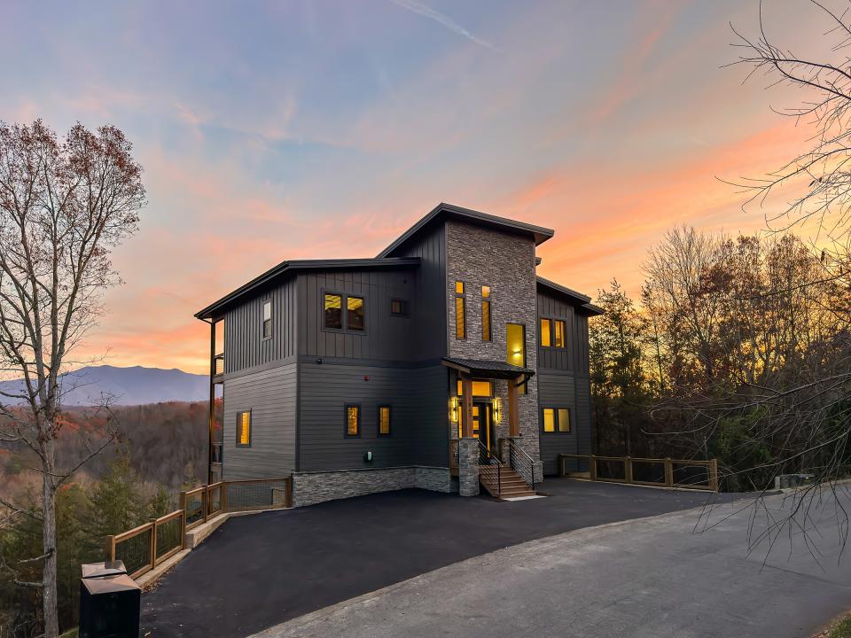 CUSTOM built, CUSTOM designed modern chalet with jaw dropping MOUNTAIN VIEWS just minutes from Pigeon Forge Parkway! Certificate of Occupancy in hand for 18 guests; this property is ready for service in 2025. Rental projections for $225k+. Mt. LeConte is front and center from every deck and common area and 4 of the 6 bedrooms! Indoor heated gunite pool will help this property perform consistently. 6 spacious suites, 1 on the main floor, 4 upstairs, and 1 on the basement floor. Main floor features 12ft ceilings and 10ft tall commercial style glass perfect for taking in the mountain views. Open concept floor plan perfectly blends kitchen, dining, and living into 1 large space perfect for entertaining and large gatherings. Upstairs common area has a dry bar and more glass to take in the great views. Basement floor features 12ft ceilings with endless entertainment via the game space, dedicated theater, indoor pool, and hot tub! Generous decks on all 3 floors, and 3 bedroom suites feature their own private balconies for intimate and private enjoyment of the amazing mountain views! Just 8 minutes from Pigeon Forge Parkway this mountain getaway will make for an ideal Short Term Rental!