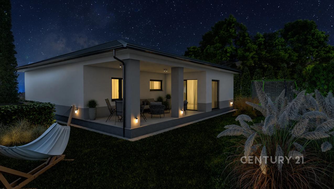 Samostatně stojící rodinný dům s dispozicí 4+kk a celkovou plochou 106 m² bude postaven na pozemku o rozloze 841 m².