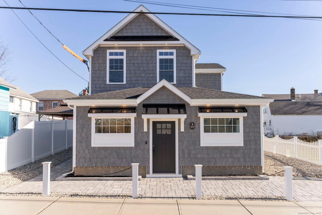 Just two blocks from the sandy shores of Sound View, this completely reimagined coastal home delivers the perfect blend of modern style and timeless beachside living. Every inch of this 3-bedroom, 2-bath residence has been meticulously remodeled, offering 1,608 square feet of bright, sophisticated spaces designed for effortless comfort. The open-concept first floor welcomes you with sun-filled living and dining areas anchored by a beautifully appointed kitchen-an ideal setting for entertaining after a day at the beach. A first-floor bedroom and full bath provide desirable flexibility for guests or multigenerational living. Upstairs, a spacious laundry room and two additional bedrooms await, including a luxurious primary suite with soaring cathedral ceilings and peaceful glimpses of Long Island Sound-a serene retreat to begin and end each day. Outdoor living is equally inviting with a generous covered porch and patio, perfect for morning coffee, evening cocktails, or simply taking in the coastal breeze. Whether you're seeking a turnkey beach escape or envisioning a future year-round residence, this impeccably finished home embodies the very best of Sound View living.