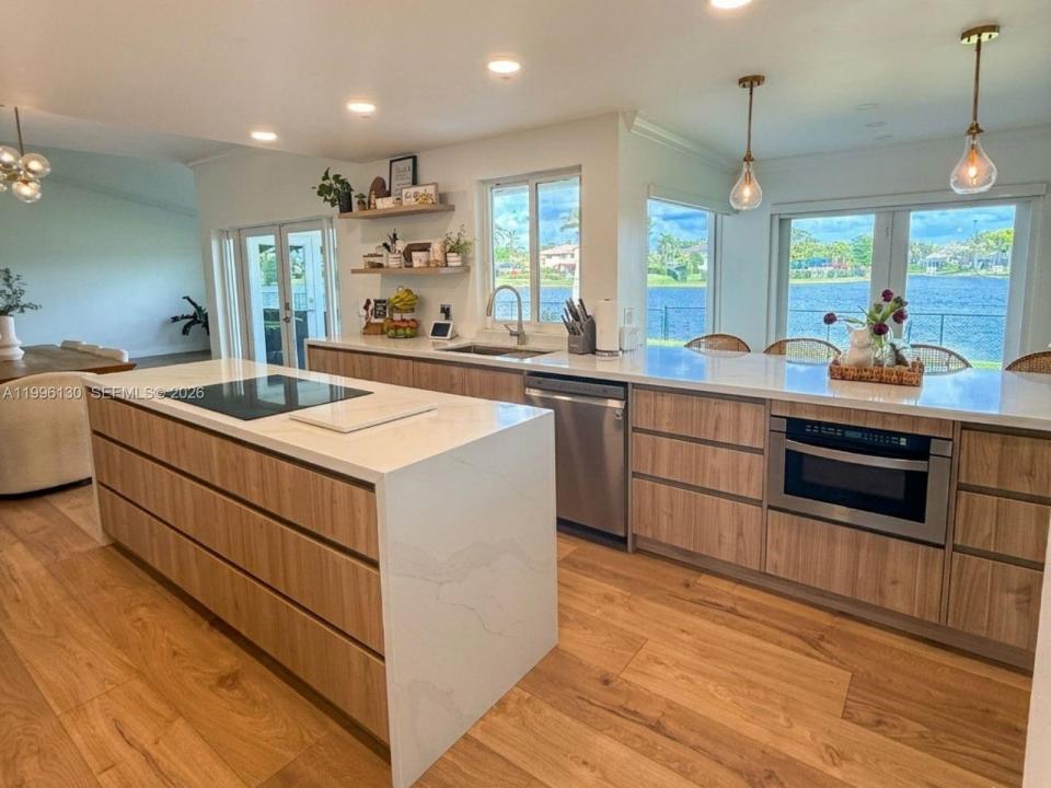 Modern luxury living in Chapel Trail – Pasadena II. Stunning fully remodeled estate home featuring 4 bedrooms plus a converted garage that can be used as a 5th bedroom, gym, or flex space, 3 full bathrooms and 1 half bath, with nearly 3,000 sq. ft. of beautifully designed living space. This home is exceptionally bright and filled with natural light, offering a warm and inviting atmosphere throughout. The open-concept layout is ideal for both everyday living and entertaining. The property showcases high-end finishes, including a modern Italian-style kitchen with elegant cabinetry, granite countertops, recessed lighting, and top-of-the-line appliances. The primary suite is conveniently located on the first floor and features a spacious master bathroom, a walk-in closet plus two additional closets, and a cabana-style bathroom with direct access to the patio, providing added convenience for guests and outdoor use. Upstairs you will find three generously sized bedrooms and one full bathroom. The home also includes impact windows throughout and a laundry room on the first floor. Enjoy a spacious and cozy backyard, fully fenced for privacy, with a beautiful and serene lake view, perfect for relaxing or entertaining. Located in a highly desirable and family-friendly community, close to top-rated schools, parks, shopping, dining, and major highways.