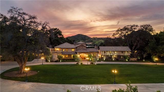 Set behind private gates on over 4 fully usable acres in Sand Canyon, this extraordinary estate offers approximately 11,000 square feet of living space with 6 bedrooms and 10 bathrooms, including a 8,895 sq ft main residence and a 2,019 sq ft detached guest house. Rebuilt and expanded down to the studs in 2019, the home showcases exceptional craftsmanship, custom lighting, and advanced automation with integrated in-wall iPad controls managing lighting, security, and water features. A grand foyer opens to soaring ceilings, dramatic stonework, multiple fireplaces, and a stunning great room anchored by an expansive entertainer’s bar with seating, custom cabinetry, sink, and ice maker. The gourmet kitchen features high-end appliances, custom cabinetry, two butler’s pantries, a walk-in pantry, generous prep space, and a breakfast area flowing into the formal dining room. Designed to live like a single story, the main level includes a luxurious primary suite with a spa-inspired bath and expansive dual closets, along with a guest suite, private office, and an oversized laundry room. The upper level offers three guest suites, a spacious loft with kitchenette, secondary living area, second laundry room, two balconies, and separate exterior entrance/access. A dedicated game room adds to the home’s appeal. The detached guest house provides exceptional flexibility with a pool house or gym space, kitchenette, full bath, multiple French doors, and an upstairs one-bedroom apartment with its own living room, kitchen, and laundry. The resort-style grounds feature a pebble tech pool with an adjoining shallow/wadding pool, waterfall features, fire bowls, oversized spa, fire pit, expansive lawn, wraparound porch/lanai, outdoor audio, TVs, and sweeping mountain and oak tree views. The property also includes multiple garage spaces with an electric vehicle charger, covered RV parking, a versatile barn/garage outbuilding, and room for horses with a corral/paddock area, there is more useable space for a barn or tennis court, etc. Additional features include shutters, a comprehensive security system, 600-amp three-phase power, owned solar, a commercial-grade backup generator, city water, and a private well producing water for irrigation. The estate has been featured as a filming location, including on the television series S.W.A.T., and offers potential for continued production use, subject to buyer verification.