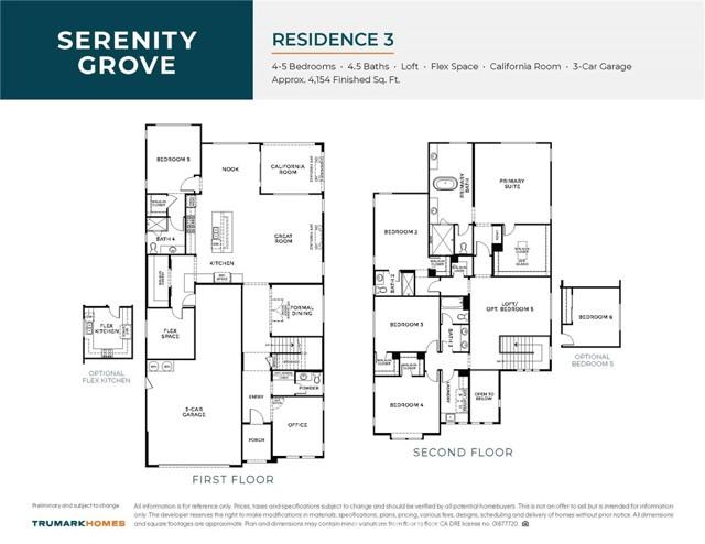 Plan 1 at Serenity Grove in Chino Hills offers approximately 4,154 sq. ft. of beautifully designed living space off Old Carbon Canyon Road. This two-story home features 5-6 bedrooms and 4.5 baths. The gourmet kitchen with large island and walk-in pantry opens to a spacious great room with fireplace and sliding doors to the California Room, creating seamless indoor-outdoor living. Upstairs, the luxurious primary suite includes a spa-inspired bath and oversized walk-in closet. A loft, office, and 3-car garage provide added versatility and storage. Experience modern luxury living in the serene hills of Chino Hills. Buyers still have time to choose all upgradtes including structural, flooring, electrical and all finishes to the home!