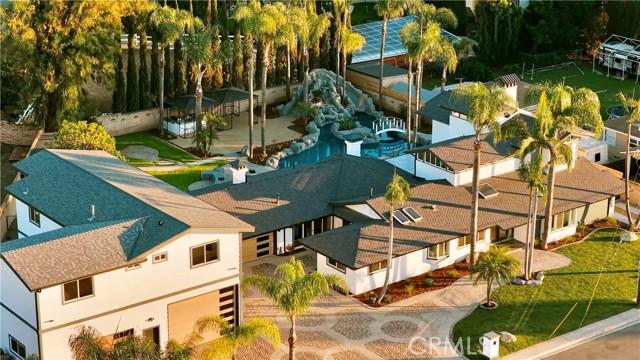 A beautifully designed multi-generational estate offering 6 bedrooms and 6 bathrooms across two separate residences, set on an expansive, flat lot of over half an acre in one of Yorba Linda’s most desirable neighborhoods. The main residence features 4 bedrooms and 4 bathrooms with light-filled interiors, wide-plank wood flooring, vaulted ceilings, and exposed beam architecture that brings warmth and character throughout. The living spaces are open yet well defined, anchored by a fireplace feature and large windows that create a seamless connection to the outdoors. The kitchen serves as the heart of the home, designed for both daily living and entertaining. It includes custom inset shaker cabinetry, an oversized waterfall island with seating, professional-grade Viking appliances, designer tile backsplash, integrated lighting, and direct access to outdoor living areas. The primary suite is positioned as a private retreat with vaulted ceilings and tranquil sight lines. The spa-inspired bathroom features an oversized walk-in shower, soaking tub, custom vanity, and refined finishes. Additional bedrooms and bathrooms continue the home’s cohesive design, offering comfort, privacy, and luxury. A standout feature of the property is the separate second residence, offering 2 bedrooms and 2 bathrooms above an expansive RV-sized garage. The garage provides substantial space ideal for multiple vehicles, specialty storage, or collector use. The upper residence includes a full kitchen and living area, creating a fully independent home well suited for extended family, guests, or private living quarters. The grounds are designed for both relaxation and entertaining, featuring a massive resort-style pool, expansive hardscape and lounge areas, multiple outdoor gathering spaces, a built-in BBQ with a full-sized countertop, and horse stalls. The flat lot offers exceptional usability and privacy throughout. This is a rare opportunity to own a versatile estate that combines high-end finishes throughout, multi-residence flexibility, and expansive outdoor space in one of Yorba Linda’s most desirable neighborhoods.