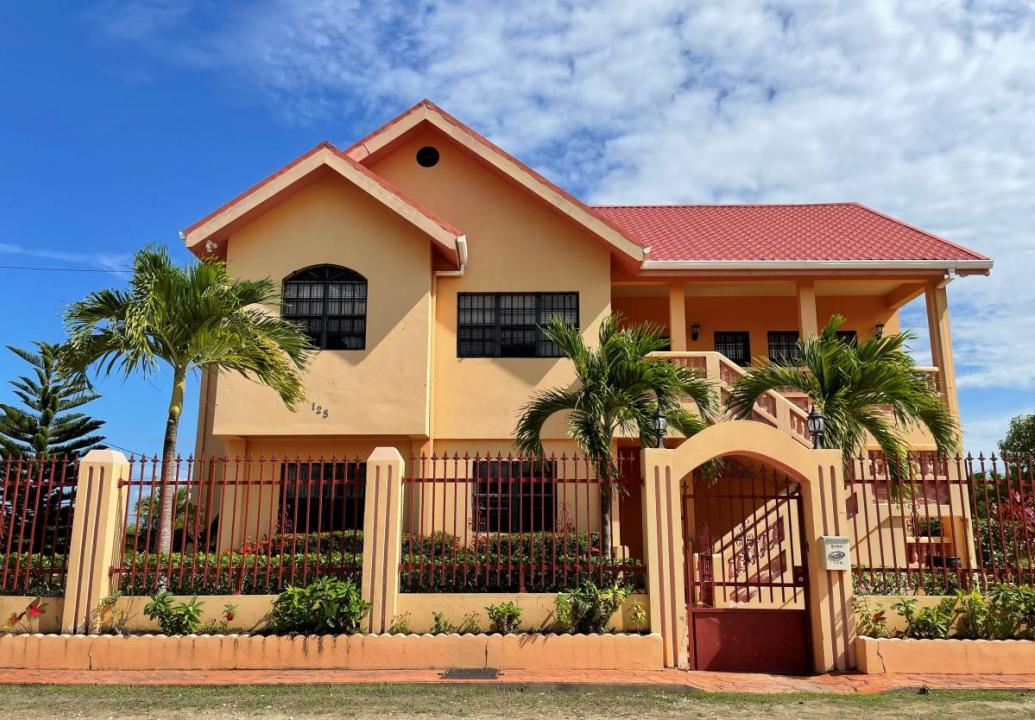 Remarkable family home situated within one of Belize’s most sought-after neighborhood, Lake Gardens known for its peaceful and tranquil ambiance. Lake Gardens is a privately developed residential community located within the Ladyville region with quick access to everyday amenities, banks, restaurants, shopping centers, hardware, etc. It is also conveniently located less than 10 mins from the Philip Goldson International Airport and 20 minutes from central Belize City. The community was privately developed and has been populated with well built and maintained homes. Situated on almost half of an acre (2,333.33 square yards), this double storey home offers an impressive living space area of +/- 3,957 square feet with an additional +/- 326 square feet detached caretaker’s home within the secured fully fenced +/- 102 feet by +/- 205 feet parcel. Entry to the first floor, the main house, opens into an airy semi-open concept layout of the 8-person dining room, the family/living room, and the hallway leading to the 3 bedrooms, and 2 baths. The equipped custom hardware kitchen provides ample storage spaces, pantries, and countertop space for food prepping as well as a cozy breakfast nook. Both the kitchen and living room offers direct access to the spacious +/-654 square feet porch perfect for outdoor entertainment and/or family gatherings. Each bedroom offers built-in closet spaces and ample natural lighting and ventilation. The master bedroom has additional storage with a walk-in closets and built-in shelves. The private master bathroom is equipped with a double sink vanity, glass enclosed standing shower and of course a jacuzzi tub for relaxing. Stepping down to the ground floor level via external stairways, it offers a private 1 bed – 1 bath apartment space with living, dining, and kitchen area. This level also offers a multifunction space for a gym or an office and an enclosed two (2) carport garage in addition to the external 4 carport space. The detached caretaker’s quarter has a similar set up as a studio apartment with a roomy open concept bedroom/kitchen area and a private bathroom. This structure also provides separated storage space for tools and machinery. An additional highlight must focus on the beautifully landscaped grounds with an array of fruit and flowering plants. Not to mention the plentiful space for building outdoor recreational grounds such as pool, playground, garden, and much more. (ref:21167)