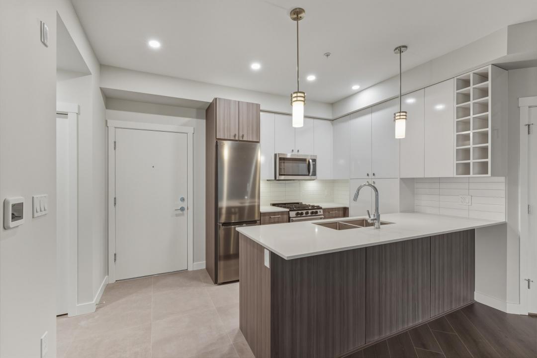 Beautiful, bright, and spacious 1-bedroom plus large den home available for immediate occupancy. The sizable den, complete with double French doors, is ideal as a second bedroom or a comfortable home office. The open-concept kitchen features stylish two-tone cabinetry, stainless steel appliances, a gas range, and quartz countertops. Step out onto the generous, fully covered balcony equipped with a natural gas hookup perfect for year round BBQs and enjoy a pleasant view overlooking the central courtyard. This home includes one secure parking stall with a built-in EV charger. Located in Hamilton Village in East Richmond, you’re just minutes from Queensborough Landing, Walmart, Tim Hortons, Costco, and more. The area offers quick and convenient access to North Delta, Surrey, Burnaby and Van.