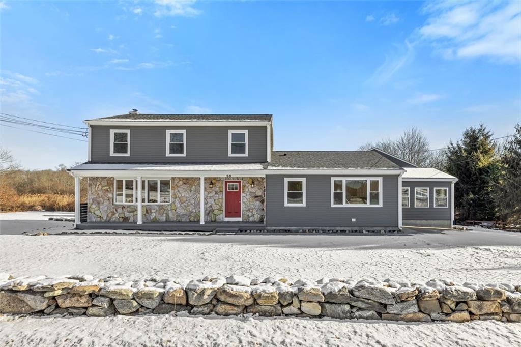 Discover exceptional craftsmanship in this beautifully renovated Warren showpiece, offering a rare and unique opportunity to own a legal two-family home set within the peaceful Warren countryside, featuring a four-bedroom, two-and-a-half-bath main house and a fully renovated back house with two additional bedrooms, an extra bathroom, garage, and ample storage. The main home boasts a brand-new eat-in kitchen with shaker-style cabinets and granite countertops, a formal dining room ideal for entertaining, and an oversized living room centered around a custom-built shiplap fireplace, filled with natural sunlight and enhanced by hardwood flooring throughout. The primary suite includes a luxurious ensuite bath, custom walk-in closet, and private deck perfect for morning coffee or evening relaxation, while first-floor laundry adds everyday convenience. Outside, the inground pool with new concrete surround, fencing, and stonework creates an entertainer’s paradise, and thoughtful updates including new mechanicals, roof, windows, and decking complete the property, ideally located just steps from Frerichs Farm and close to I-195, shopping, and dining.