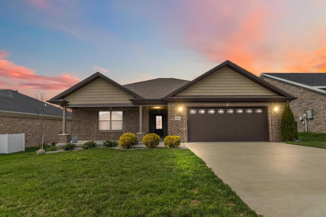 Spacious all-brick ranch offering over 1,800 square feet in the heart of Richmond, Kentucky. This well-designed split-bedroom floor plan provides both functionality and privacy, with a large open layout ideal for everyday living and entertaining. The main living area features LVT flooring throughout, double crown molding, and an electric fireplace, creating a clean and updated feel. The kitchen is built for both style and use, offering quartz countertops, tiled backsplash, stainless steel appliances, a large island, and an oversized pantry. The primary suite is a standout, featuring trey ceilings with crown molding, two separate vanities, two linen closets, a fully tiled 5-foot custom shower with framed glass door, private water closet, and a spacious walk-in closet. Additional bedrooms offer walk-in closets and ceiling fans. Custom, upgraded lighting is installed throughout the home. Enjoy covered front and back porches along with an extensively upgraded backyard featuring poured concrete, a fire pit, and pergola—ideal for outdoor entertaining and relaxation. Conveniently located near shopping, dining, and everyday amenities, this home offers quality finishes, functional design, and move-in ready condition.