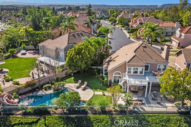 Back on the market. Majestic panoramic views of the Saddleback Mountains, rolling hills, sparkling lake/reservoir, and dazzling city lights make this truly a one-of-a-kind home. Perched at the end of a quiet cul-de-sac on one of the premier lots (approximately 9,000 sq. ft.) in the prestigious 24-hour guard-gated community of Dove Canyon in South Orange County, the views are so profound you simply won’t be able to take your eyes off them. Enjoy breathtaking morning sunrises and moonlit evenings from multiple backyard patio areas or the private second-level deck. The lot and location truly make this home a rare find. This beautifully well-maintained home reflects true pride of ownership and offers 4 bedrooms and 3 bathrooms, including a convenient downstairs bedroom ideal for guests or a home office. Designed for both comfort and entertainment, the backyard offers a true private resort experience. Enjoy the sparkling pool and spa with a recently re-PebbleTec bottom, freshly painted boulders, waterfall and slide, built-in BBQ, large fire pit, newer hardscape, patio and garden lighting, and artificial turf. An expansive upper deck showcases incredible vistas and provides a spectacular secondary entertaining space. A staircase connects the downstairs patio to the upper deck, creating seamless indoor-outdoor flow and making this elevated setting ideal for large or intimate gatherings. The primary suite is a private retreat designed to capture spectacular panoramic views from every angle, filling the space with natural light. The ensuite bath features dual vanities, a soaking tub, and a separate shower, creating a comfortable escape. Enjoy your morning coffee on the deck while surrounded by natural beauty and the birds humming. The upper level also offers two spacious secondary bedrooms (one with a walk-in closet) and a full bath, providing comfort for family or guests. This home has been well maintained with newer Milgard dual-pane windows, newer dual-zone AC units, a newer hot water heater, and complete PEX re-piping. Residents of Dove Canyon enjoy resort-style amenities including a private Jack Nicklaus Signature golf course and clubhouse, tennis and pickleball courts, community pool and spa, scenic hiking and biking trails, a children’s playground, and many community events. Walking distance to Santa Margarita Catholic High School and located near award-winning public schools. This home truly has it all. Come and see this exceptional home.