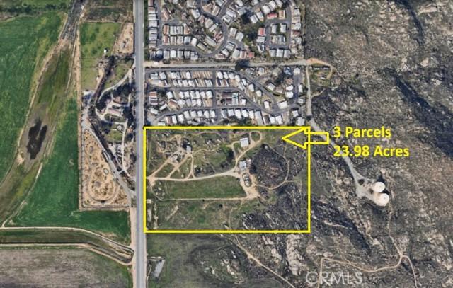 Multiple units producing over $7000 a month. Additional units may be added. Perfect location for development (Gas Station, Shopping Center, Gated Senior Community, Recreation, etc. Gorgeous, breathtaking views of Diamond Valley and South Hemet. Large buildable 24 acres up against the hillside with numerous pad locations. All utilities to the property. Currently 2 structures on the property and multiple pads for additional building sites. First structure is a 2 bedroom 1 bath manufactured home. Second structure is a barn with a habitable area inside. Huge potential for subdivision or possible school site right across from McSweeney Elementary. In the path of development. Listing includes 3 parcels: 1890 S State St, Hemet Ca 92543 APN# 451-150-008 (8.11 Acres), 2000 S State St, Hemet Ca 92543 APN# 451-150-034 (7.97 Acres), 27700 S State St, Hemet Ca 92543 APN# 451-150-027 (7.89 Acres).Seller is motivated. Submit an offer today.