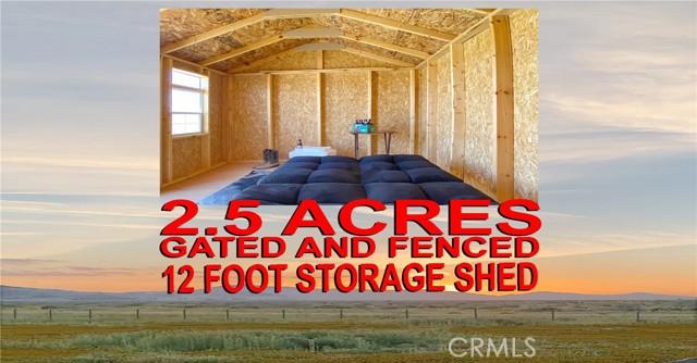 2.5 ACRE LOT, WITH 12-FOOT STORAGE SHED, GATED-FENCED, WITH RAISED FOUNDATION, on maintained 7-mile ROAD for VERY easy access. Neighbors land behind not is not buildable (See White Map Photo Showing Open Space Easement). Nearby hunting in Eastside BLM property, off road driving or motorcycles. Bring your horses, cows, goats. Great for a vacation getaway or build your dream home. Manufactured homes okay. Address number is estimated and NOT correct. Contact agent for Precise Directions and Maps. GPS 35.284131, -119.903332 APN 084-481-013