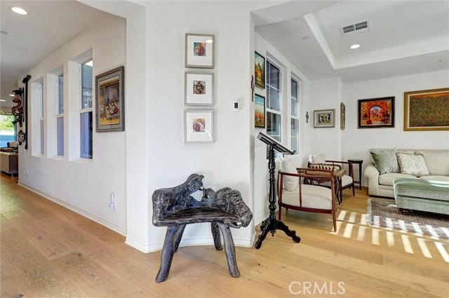 This luxurious home has been thoughtfully upgraded for modern, comfortable living. Located in the prestigious, gated community of Meridian Hills, it sits just minutes from the exquisite Moorpark Country Club. One of the most desirable floor plans in the neighborhood, this residence features a spacious light-filled atrium—complete with a dog door suitable for small to medium pets. While four bedrooms are located upstairs, a private bedroom with its own full bath is conveniently situated on the main floor, ideal for guests, a housekeeper, or multigenerational living. Rich hardwood floors run throughout the entire home, complemented by custom shutters in most rooms. The serene Primary Suite is a true retreat, offering a spa-like bathroom with soaking tub, oversized shower with upgraded glass enclosure, dual vanities, and two spacious his and hers walk-in closets. The open-concept living area centers around a gourmet kitchen with upgraded countertops and moldings, a large island perfect for gatherings, soft-close cabinetry, and a refrigerator in butlers pantry. The home is also equipped with interior fire sprinklers for added peace of mind. Outdoor living is equally impressive. Three tranquil water features are located in the front yard, atrium, and backyard sitting area complete with a fire pit. The backyard is an entertainer’s dream, showcasing travertine pavers, a side paver walkways on both sides of the home with circular detail on one side, and a pathway with steps leading to an elevated custom seating area with city views. A custom awning imported from Germany shades the main travertine sitting area for year-round enjoyment. The front yard has been completely reimagined with upgraded hardscape/pavers, elegant entry lighting, an inviting sitting area, and matching upgraded lighting on both sides of the three car tandem garage. Come experience how perfectly this home fits your lifestyle—refined living with elegant details in one of Moorpark’s most sought-after communities.