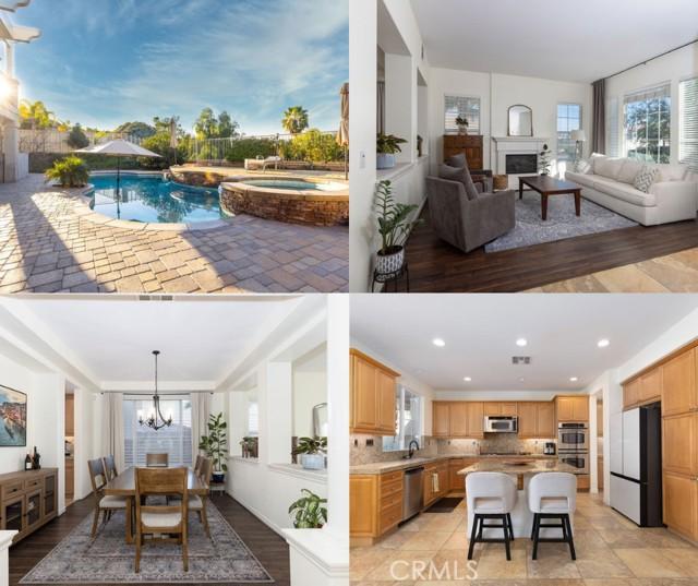 POOL + PAID-OFF SOLAR | CANYON LAKE VIEWS | CUL-DE-SAC TUSCANY HILLS HOME Stunning pool home located on a quiet cul-de-sac in the highly desirable Tuscany Hills community with panoramic hill and Canyon Lake views and no rear neighbors. This spacious 5-bedroom, 5-bath home offers 4,021 sq ft with a 3-car tandem garage on an 8,276 sq ft lot. Energy-efficient upgrades include paid-off solar, dual A/C units, a tankless water heater, and a whole-house fan. The backyard is an entertainer’s dream with a saltwater pool, spa, waterfall, and fire pits—perfect for enjoying sunset views. Inside features cathedral ceilings, two gas fireplaces, and a gourmet kitchen ideal for entertaining. The flexible floor plan includes a main-level primary bedroom or private in-law suite with a full bath. Upstairs offers a loft, Jack & Jill bath, 4 additional Bedrooms, and a Home Theater with a Projector. The Primary suite includes a Private balcony, walk-in closets, a jetted tub, a walk-in shower, and dual vanities. Residents enjoy resort-style HOA amenities including pools, spa, clubhouse, tennis courts, parks, and playgrounds, just minutes from Tuscany Hills Elementary and about 20 minutes to Temecula Valley Wine Country.