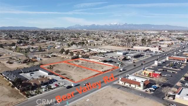 2 adjacent lots with 261 feet frontage on Bear Valley Road. Between cottonwood and Locust Ave. No median strip, one of the fewest lots where left turn to and from opposite lane is permissible. Less than 1/2 mile to interstate 15 on/off ramp. Zoned C2 and general commercial. All utilities are available. Buyer to verify all information.