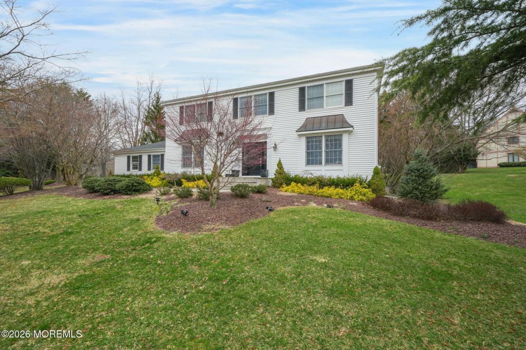 Beautifully maintained center hall Colonial on a private 1-acre corner lot in sought-after Holland Ridge, Holmdel. This 4 bedroom, 2.5 bath home offers a ]spacious layout w/hardwood & tile floors, freshly painted, decorative moldings, roof replaced in 2024 & newly finished basement. Eat-in kitchen features granite counters, SS appliances, abundant cabinetry & built-in coffee/wine bar. Open living/dining plus a warm & spacious family room w/fireplace make this home ideal for everyday living and entertaining. The finished lower level offers over 1,300 square feet of versatile space perfect for recreation, gym, playroom, office, or storage. Sliders off the kitchen lead to a peaceful, park-like backyard with paver patio.
