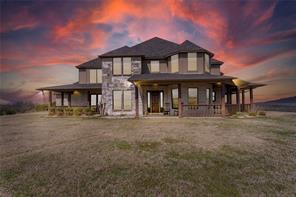 Welcome to this breathtaking 35-acre ranch in the prestigious Nolan River Estates of Cleburne, TX! This stunning estate offers the perfect blend of luxury, functionality, and Texas charm. A grand entrance welcomes you with a striking red oak staircase, setting the tone for the elegance within. Boasting 5 bedrooms, 4 full baths, and 2 half baths, this home is designed for comfort and style. Upstairs, all secondary bedrooms feature spacious walk-in closets, along with a generous living space and designated study area. The private primary suite, located just off the main living room, offers a secluded retreat with its own sitting area, soaking tub, massive walk-in shower, dual sinks and closets, and a private entrance from the pool. The sitting area also has its own porch access for peaceful outdoor relaxation. This estate is complete with a grand library, a rare Texas-sized basement currently serving as a gym, and a chef’s dream kitchen with a butler’s pantry and built-in desk for staying organized. The outdoor oasis features an expansive diving pool and wrap-around porches that showcase breathtaking 360-degree hilltop views. A true masterpiece, this ranch offers unparalleled space, privacy, and sophistication—your perfect Texas dream home awaits!