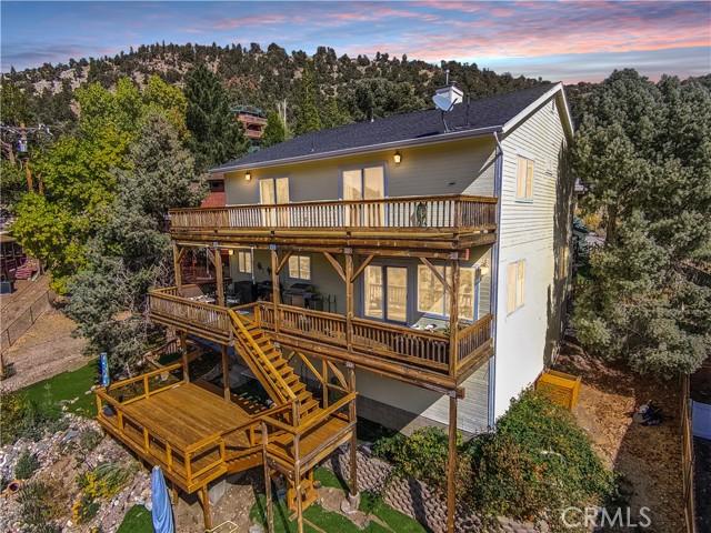Discover this stunning home on the sunny side of Wrightwood, where the sunlight bathes the property and snow melts quickly away. Nestled on a peaceful cul-de-sac on Apple Vista Drive in the secluded neighborhood located up Rivera Dr. This elevated residence offers breathtaking, unobstructed views of the north facing mountains preserving the snow covered landscape longer than any other part of town. Built in 2007, this spacious 2,631-square-foot home features 3 bedrooms and 3 full bathrooms. The chef’s kitchen is equipped with highend stainless steel appliances, a large countertop burner, granite countertops, and custom cabinetry. Ample storage options include a walk-in pantry and utility room, making organization effortless. The main floor boasts an open-concept dining area and living room, centered around a cozy fireplace. The dining space and kitchen overlook Wrightwood’s majestic mountains, offering a picturesque backdrop. Multiple decks provide perfect spots to enjoy the crisp forest air and scenic views. Upstairs, you'll find all three bedrooms including the luxurious primary suite. The primary bedroom is a true retreat with a large soaking tub, dual sinks, and an expansive glass shower. The walk-in closet offers plenty of space for your wardrobe. Both the primary and secondary bedrooms feature access to the deck’s highest vantage points, perfect for soaking in the natural surroundings. The generously sized bedrooms surpass standard expectations, offering ample comfort and space. Dual air conditioning units ensure year-round comfort, even during the warm summer months. On a 10,048 sq ft lot that has been detailed and design to feel like a relaxing retreat. The lush, fully landscaped front and backyards include a dedicated garden area with a built-in pest deterrent system, ideal for growing your own produce in a protected environment. Additional features include expanded paved parking with RV access along the side of the home, as well as an unfinished basement for extra storage and easy access to plumbing, furnace, ducting, and home water treatment systems. Located within the highly acclaimed Snowline School District, with convenient bus routes nearby, this move-in-ready home is a true gem—an exceptional property in a proud, well-maintained neighborhood. Don’t miss the opportunity to make this remarkable residence your new mountain retreat.