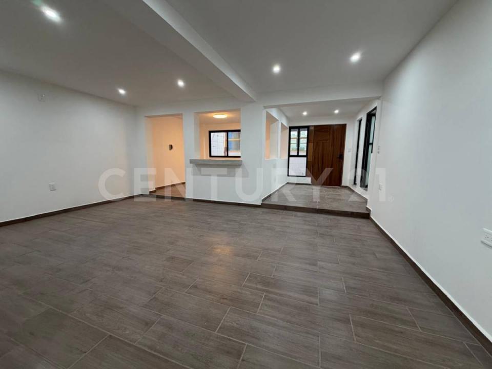 Departamento de 85 m2 que cuenta con dos recámaras, un estudio, bano completo, medio bano, interfón, bodega privada, áreas comúnes y servicios, área de lavado, tendido en azotea y estacionamiento.