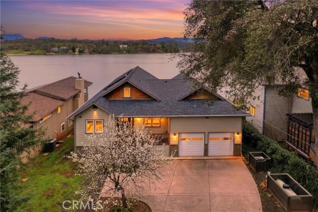 Welcome to an exceptional lakefront retreat on sought-after North Shore Drive in the gated community of Hidden Valley Lake. Built in 2019, this stunning 5 bedroom, 3.5 bath, approximately 2,982 square foot two-level home offers a rare opportunity to enjoy true waterfront living with breathtaking views of the Hidden Valley Lake. Enjoy OWNED SOLAR + EV Charger for energy efficiency! The main level is designed to maximize both comfort and scenery, featuring vaulted ceilings and an open-concept floorplan filled with natural light. Rich bamboo flooring flows throughout the living spaces, creating a warm and inviting atmosphere. The spacious living room is anchored by a cozy propane fireplace and seamlessly connects to the dining area and kitchen — perfect for entertaining or simply relaxing while taking in the lake views. The kitchen is both stylish and functional, complete with a large island with sink, propane range with hood, double oven, and a generous pantry for storage. Just off the main living space is the indoor laundry suite for everyday convenience. Also on the main level are two guest bedrooms and a well-appointed guest bath featuring a tile tub/shower combination. The primary suite is a true sanctuary, offering peaceful lake views and a luxurious ensuite bath with a large jetted soaking tub, expansive walk-in tile shower, and double sink vanity. Downstairs, the home continues to impress with durable stained concrete flooring throughout and a spacious second living area featuring oversized sliding glass doors that frame the lake and provide seamless indoor-outdoor living. Two additional guest bedrooms on this level each feature sliding glass doors for easy access to the outdoors and lakefront. A guest bath with tile walk-in shower serves this lower level. Step outside to enjoy multiple covered patio spaces designed for year-round enjoyment. The upper patio showcases a beautiful pine-lined ceiling and expansive lake views, while the lower level opens to a paver patio, lush lawn, and swaying palm trees. Unwind in the large spa overlooking the water or stroll down to your own beach with direct lake access and room to add a private dock. This is a rare chance to own a newer construction lakefront home in one of Hidden Valley Lake’s most desirable locations — offering space, style, and the ultimate waterfront lifestyle.