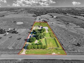 Priced to sell!!!!!! Fabulous 3,784 sq. ft. residence that offers 5 bedrooms, 4 bathrooms, and is perfectly situated on 5 picturesque acres plus a 6,500 + sqaure foot shop. Walk into this beauty and arrive in the spacious family room, featuring vaulted ceilings, custom built-ins, views of the backyard and pool, and an open flow into the dining area. At the heart of the home, the chef’s kitchen shines with granite countertops, custom cabinetry, a farmhouse sink, double ovens, cooktop, dishwasher, pantry, and breakfast bar. Flowing seamlessly into the breakfast area, formal dining room, and vaulted living room, it’s designed for both everyday living and effortless entertaining. The secluded primary suite is a private retreat featuring dual walk-in closets, direct patio access, and a spa-inspired ensuite with granite countertops and a tiled walk-in shower. All bedrooms are gracious in size and closet space. Step outdoors to your very own resort-style oasis complete with a sparkling in-ground pool and spa, expansive sun-soaked terrace, and cabana—perfect for summer gatherings. For the hobbyist, entrepreneur, or equestrian, the property features a 6,668 square foot workshop (previously a cabinet-making shop) with electricity, an office, and half bath; a barn; and a shed with covered stalls. Every fenced section is equipped with its own water access, making the land ideal for cattle, horses, or other livestock. Additional highlights include a secluded area that consists of approx 880 square feet that serves as gameroom with sink, mini fridge and built-ins, plus there is a circular driveway, excellent parking spaces, two-car garage, carport, and lush landscaping with mature trees that provide beauty and privacy. NEW ROOF 2025. A rare opportunity—this exceptional property is priced to sell and truly offers a little piece of heaven in Texas.