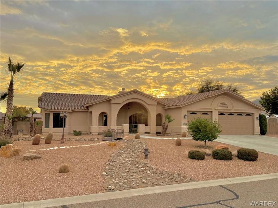 Truly ONE*** OF*** A*** KIND this custom-built masterpiece stands alone in Kingman! (The builder only built one in this floorplan and he has since retired!) Designed and constructed as a unique, single-build floorplan, this exceptional property offers over 2,200 sq ft of beautifully crafted living space in the main home plus a full detached casita with over 1000 sq ft perfect for guests, hobbies, or multi-generational living. Step inside to a grand, light-filled living area anchored by a striking three-sided fireplace, elegant arched entryways, and custom built-ins with integrated lighting. High-quality windows and doors, along with R50 attic insulation, ensure comfort and efficiency year-round. The spacious kitchen is a true showpiece, featuring granite countertops, custom cabinetry, a double oven, electric glass-top stove, breakfast bar seating, a cozy breakfast nook, and an inviting dining area. A large pantry and built-in desk option complete this highly functional design. Natural light pours in through the large sliding glass door and windows, creating a warm and welcoming flow throughout. The main home offers 3 bedrooms, 2 bathrooms, and a 3-car garage, all finished with thoughtful upgrades and unique architectural touches. The detached casita is a remarkable bonus offering a spacious bedroom/living area, full kitchen (which can easily be reimagined as a workshop), full bathroom, and a stunning wall of windows that fills the space with light and views. Step outside to your private oasis. The fully landscaped front and backyards showcase custom flagstone walkways, a tranquil koi pond, a generous oversized covered patio, gazebo, outdoor kitchen/BBQ, and multiple raised garden beds the perfect setting for entertaining, relaxing, and enjoying Arizona living at its finest. This rare, custom-crafted beauty delivers a blend of luxury, comfort, and unmatched uniqueness. Homes like this simply don t come around don t miss the chance to make it yours!