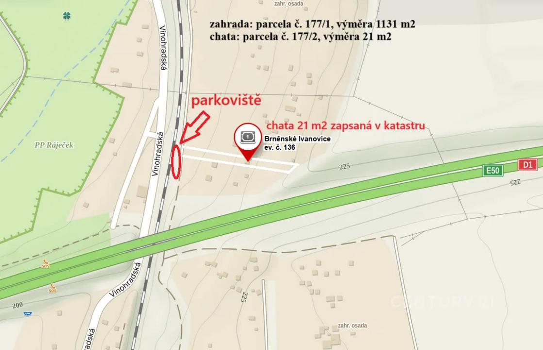 Nabízím k prodeji zahradu s chatkou o výměře 1 152 m² v Brně, katastrální území Brněnské Ivanovice, parcela č. 177/1.