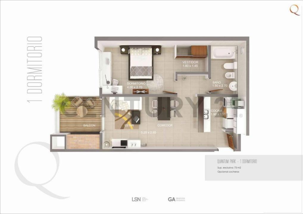 VENTA DE DEPARTAMENTO AMOBLADO DE 1 DORMITORIO SOBRE SANTA TERESA – EDIFICIO QUANTUM PARK