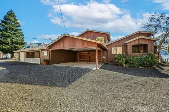 This gorgeous lakefront property features multiple units, a private launch, and a dock equipped with two power boat lifts. Owned by the same family for generations, the home has been meticulously maintained and modernized for today’s buyer. The main residence was designed with an open floor plan and large picture windows that frame stunning lake and mountain views. The great room boasts vaulted exposed-beam ceilings and integrates seamlessly with the dining area and a remodeled kitchen. The kitchen features stainless steel appliances, ample counter space, and an impressive center island with seating for six. A sliding door off the dining area provides easy access for outdoor dining and enjoying sunsets over Mt. Konocti. The main home offers two bedrooms. The lower-level bedroom shares a custom-tiled hallway bathroom with a walk-in shower. The upper-level primary suite includes a fireplace, private deck, laundry center, office space, and a walk-in closet. The primary bathroom features custom tiling and a soaking tub. Additionally, there is an attached oversized two-car garage with pull-through access to the private boat launch, plus a two-car carport. The second unit includes a one-car garage, two bedrooms, and one bathroom. It features an open and airy great room and a tiled kitchen. Sliding doors lead to an attached patio, a landscaped yard, and the private power dock with two boat slips. This home is situated in a prime location with deep waters. Located only 2.5 hours from San Francisco and 2 hours from Sacramento, this property offers seamless access to Clear Lake, where you can enjoy water sports and fishing year-round.