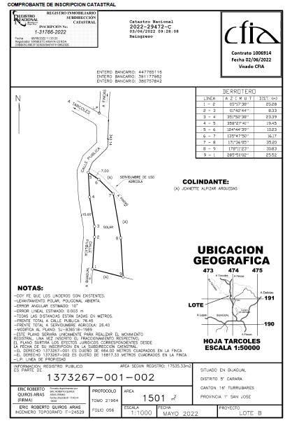 En resumen, este lote de 1,501 m² frente a la Ruta Nacional 320 en Bijagual de Turrubares es una opción excelente para aquellos que buscan un terreno espacioso en una ubicación estratégica, con todos los servicios disponibles y un entorno natural encantador. Moisés Mora Chaves