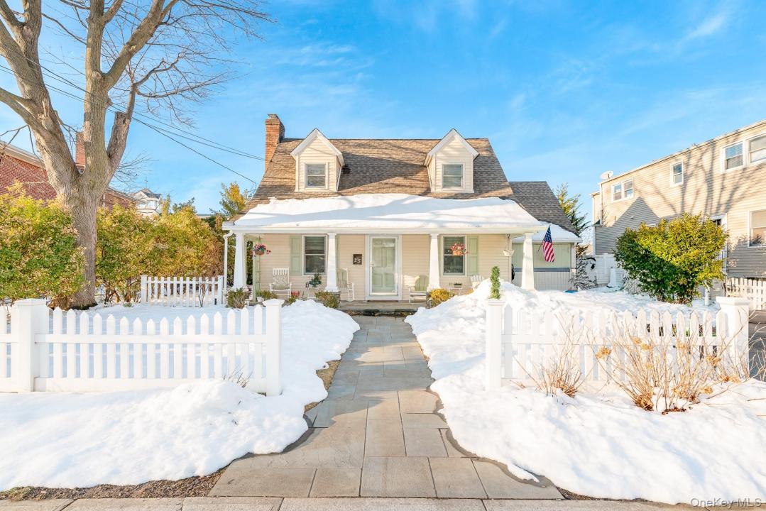 Welcome to this exceptional 4 Bedroom, 2 Bathroom Expanded Cape in North Merrick! Step inside to a semi–open concept first floor featuring a warm and inviting Living Room with a classic wood-burning fireplace and an appealing rear stair layout. The Formal Dining Room flows seamlessly into a stunning Kitchen, complete with an Island and a large Peninsula that opens to a spacious Den with Andersen sliders leading to the backyard—ideal for everyday living and entertaining. The first floor also includes a large Bedroom, a Full Bathroom, and convenient main-level Laundry. Gorgeous hardwood floors and abundant natural light create an airy, welcoming atmosphere throughout. Upstairs, the second floor offers a comfortable layout with a Primary Bedroom, two additional Bedrooms, and a Full Bathroom. All bedrooms offer generous closet space. The fully finished Basement provides excellent additional living space—perfect for recreation, a home office, or gym. Step outside to a beautifully designed backyard with a large paver patio, offering the perfect setting for entertaining or relaxing. A new bluestone paver walkway and porch enhance the home's curb appeal and charm. Located close to major parkways, the LIRR, schools, shops, and restaurants, this home combines convenience with exceptional suburban living. Don't miss the opportunity to make this North Merrick gem yours!