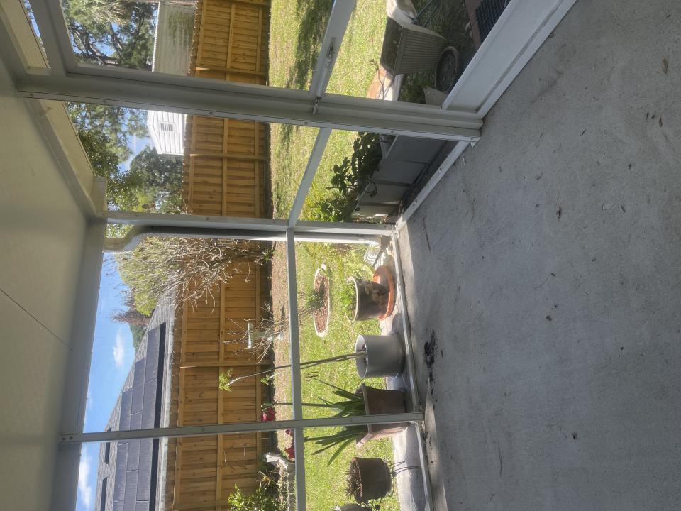Charming 2 bedroom 1 bath home perfect for first time buyer or those looking to retire in comfort. This well maintained property features a completely fenced yard for added privacy along with a screened lanai for relaxing or entertaining. Inside you will find a tile flooring and a cozy carpeted family room The kitchen is equipped with an electric stove and a brand new LG refrigerator and a dishwasher plus an open window that connects to family room for a bright connected feel Additional highlights include a new garage door, freshly painted exterior and a convenient 8 x 10 shed. Located in a welcoming family friendly neighborhood this home offers both comfort and practicality in a great setting.