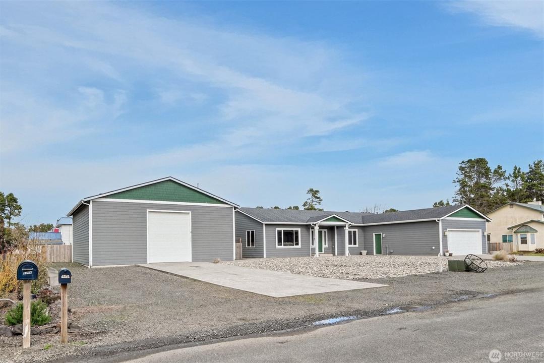 Dream coastal retreat! Spacious house and shop w/ Beach and Loomis lake access. Step inside to discover an expansive open floor plan that seamlessly connects the living, dining, and kitchen areas. Ample natural light floods the space through large windows, highlighting the elegant finishes and creating a warm inviting atmosphere. Propane fireplace in living room adds warmth and ambiance. 3 bedrooms plus office/den. For the DIY enthusiast or hobbyist, the property includes a large 34 X 40 shop with 12 ft door w/ bathroom and shower. This versatile space can be utilized for projects, storage, or even transformed into a studio or workspace to suit your creative needs. Home and shop is on a double lot and includes RV parking w/ hook ups and 50 amp server. Located in desirable Tides West, a peaceful neighborhood, this property offers a perfect blend of privacy and community. Enjoy quick access to Loomis lake for kayaking and fishing or easy walk to the beautiful beach. Close to shops, restaurants and entertainment.
