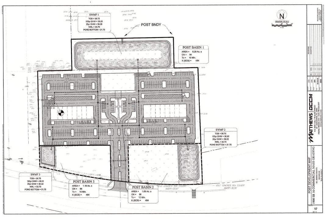 412 Feet of Frontage per each 3.5 acre parcel or 823.5 Frontage for both (per tax roll). This is directly on State Road 16 which is the Main Road in and out of Old St. Augustine, Fl. . On last review there were only two other larger parcels available in the area. One had 200 ft and the other 225 feet of Frontage on 16. Please note that the 1900 and the 1910 (Listing # 2114353) SR 16 listings are the same parcel of land with different approaches as to how it is marketed and developed. To be clear there are two engineer generated site plans in the works for this site depending on the developers vision and needs.Virtually all of SR 16 has become a High Demand/High Development Area. The vast majority of sites available two years ago are now in some phase of development.