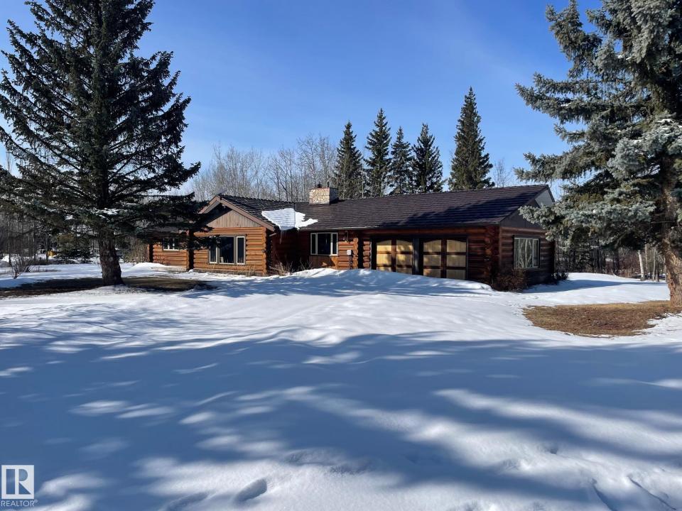 Rustic but modern log home! Cozy country living just minutes West of Edmonton, with a huge heated RV storage/work/hobby shop, approx. 30x130' with a 16' high door. The home boasts triple pane windows, Hi-eff furnace, and HW tank, and metal roof! over 2000 ft2 with a large family room, formal dining area, 3 bedrooms lots of storage with a large pantry, and has a nice 16x24' studio building out back. The property is nicely treed with just enough lawn space to make it manageable! All systems have been upgraded and well maintained. Rare find this close to the city, and only 22 minutes to YEG.