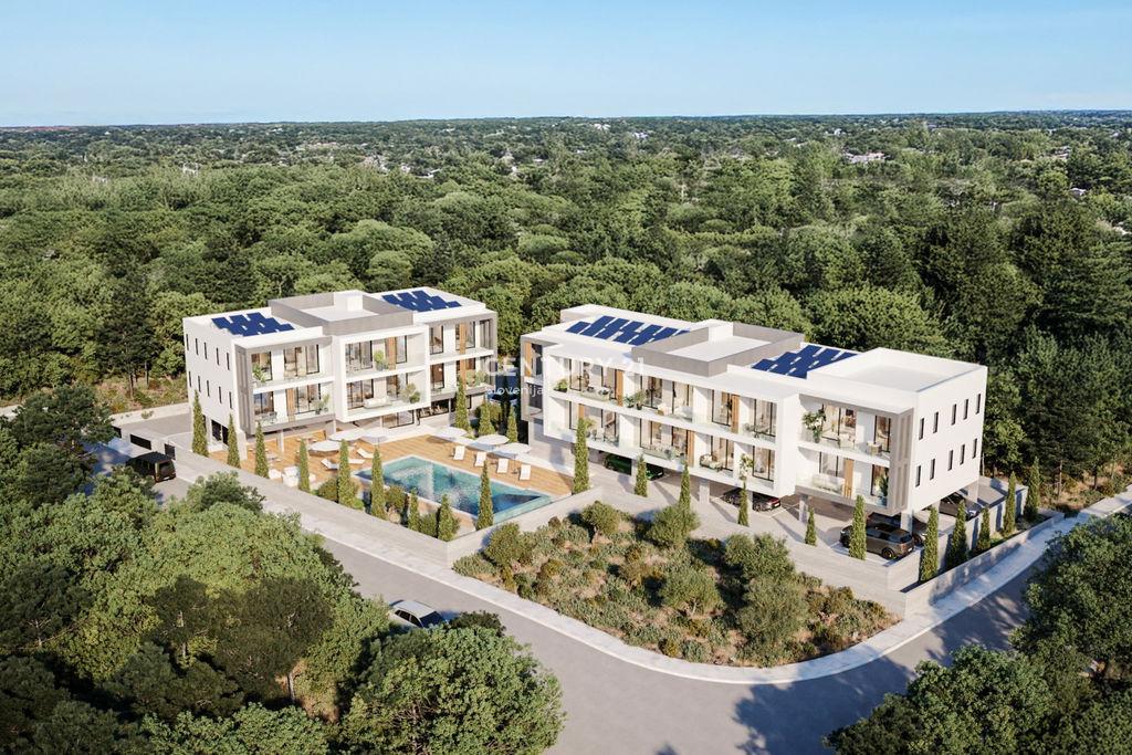 Near the city of Pafos, one of the most desirable locations in Cyprus, a modern apartment in a prestigious residential complex with a pool is for sale.