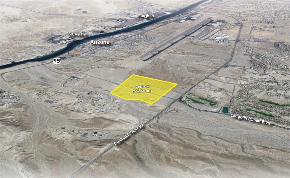 • Location: Bullhead City, Mohave County, Arizona • Total Site Area: +/- 72.59 Acres • APN: 213-14-055 • Zoning: Light Industrial • General Plan: Laughlin Ranch GP • Utilities: 12” Water Line and 8” Sewer Line along Laughlin Ranch Blvd • Purchase Price: $3,000,000 • Price/Acre: $41,000 The property being offered consists of approximately 72.59 acres of undeveloped land located along the north and south sides of Laughlin Ranch Blvd where it has 2,000 feet of frontage on each side. Laughlin Ranch Blvd is a newly constructed thoroughfare that runs east to west from Bullhead Parkway to Highway 95, which provides access into Las Vegas and California via its intersection with the I-40. The property is just to the south of the Laughlin/Bullhead International Airport and about 1.5 miles from the Arizona/Nevada border along the Colorado River. Nearby the property is the Laughlin Ranch golf club and community, as well as Laughlin, NV which is a resort and gaming industry town. In terms of the property specifics, the land has a desert terrain and is generally flat throughout. Bullhead City is less than 100 miles from Las Vegas and 300 miles from Long Beach and Los Angeles.